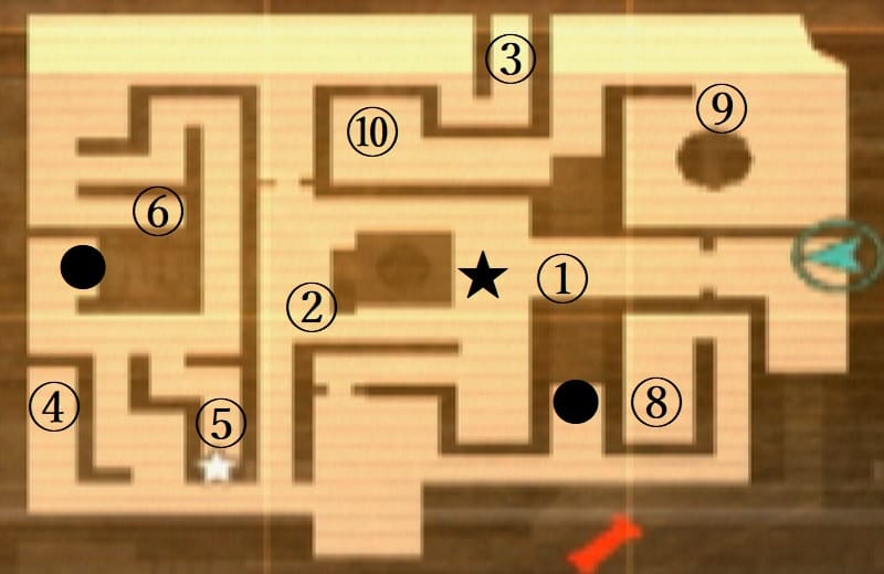 - 北部の扉を開けて右に移動し③(スピネル)を入手